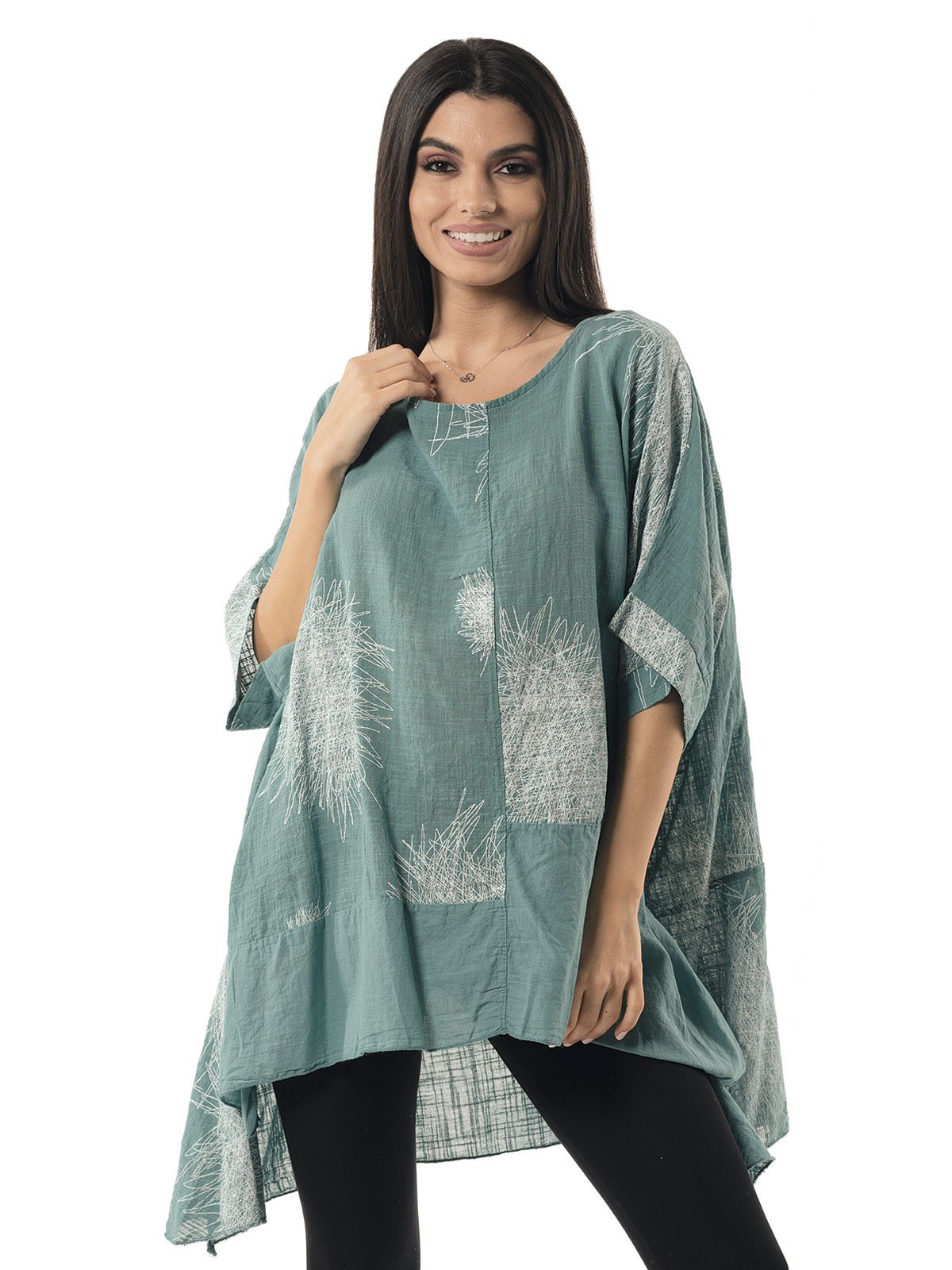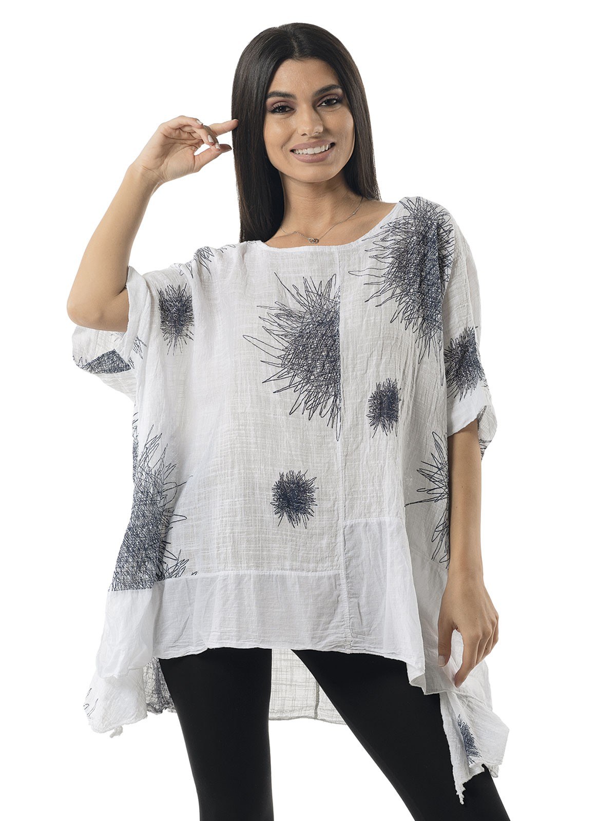 Blouse printed with sleeves and asymmetric hemline. 100% cotton