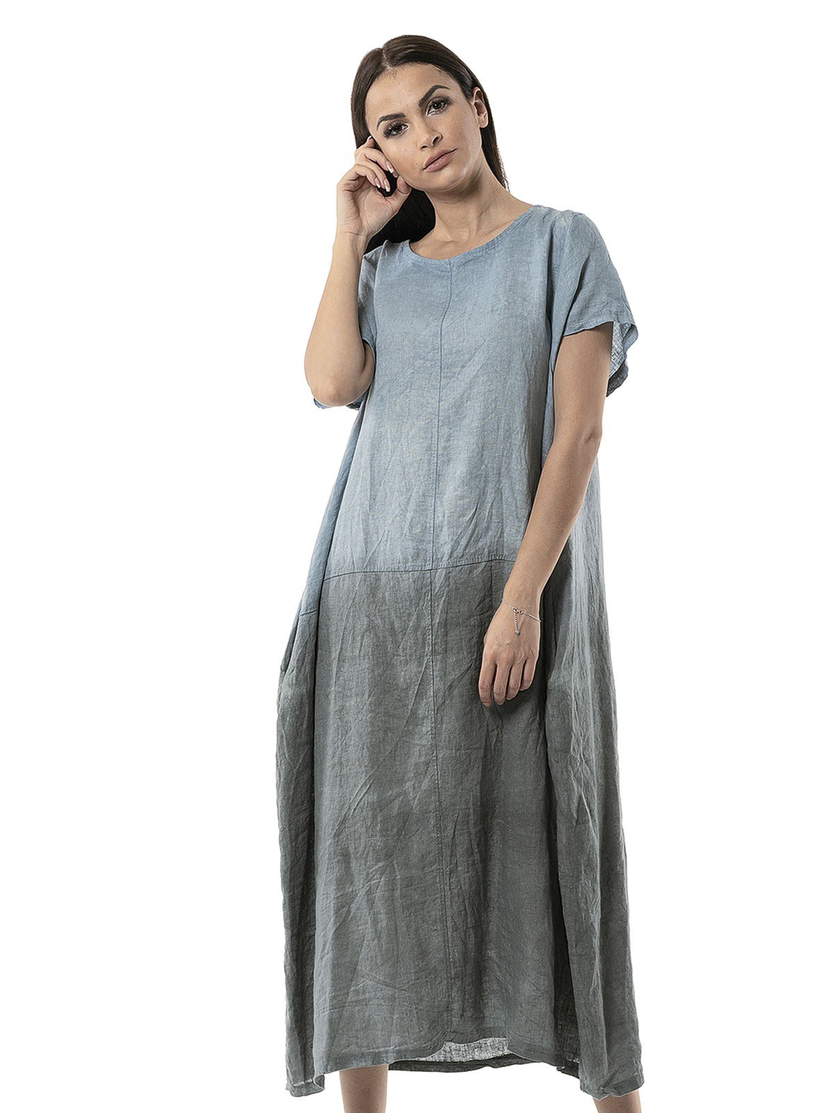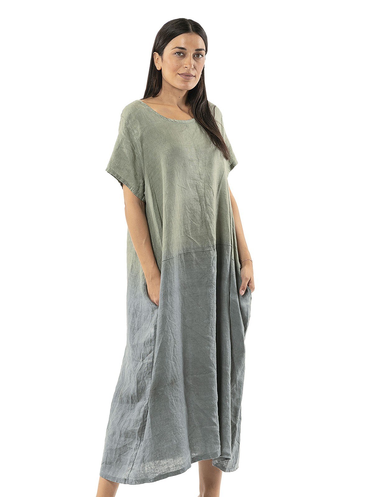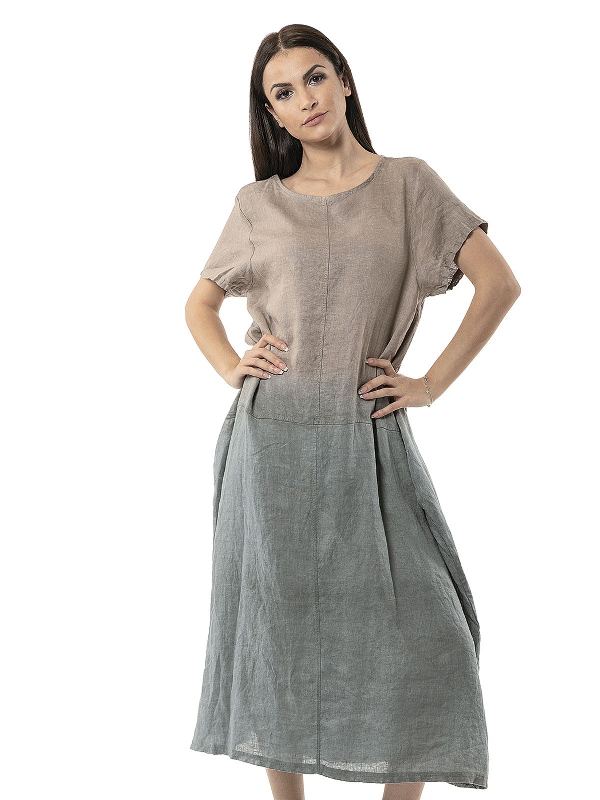 Color block linen dress with sleeves and pockets on the side. 100% linen