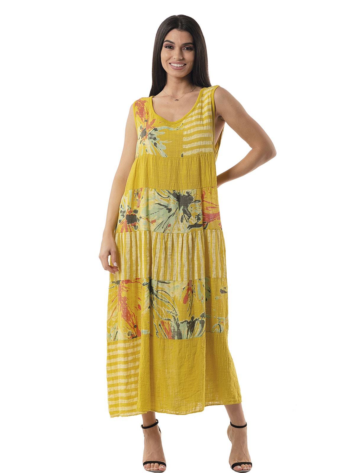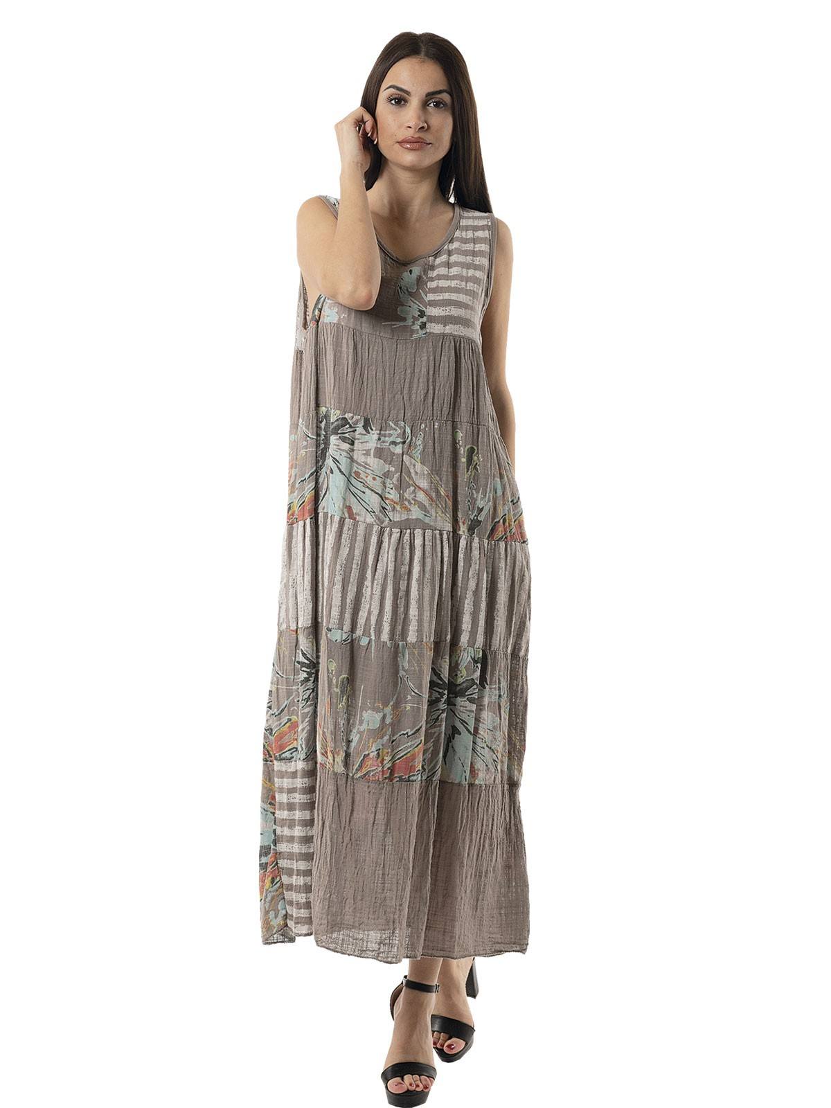 Long dress, sleeveless with alternating stripes – floral. 100% cotton