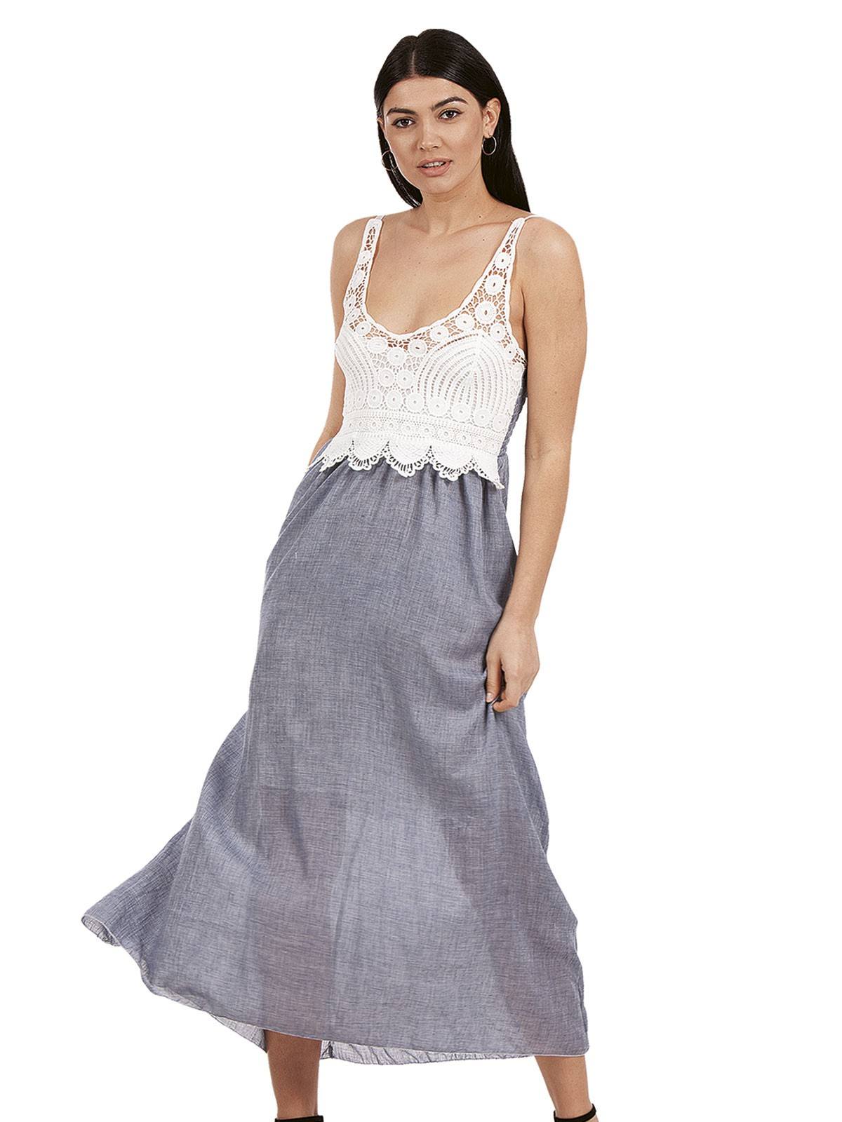 Long dress, with adjustable straps, lace on the top and band on the back. 100% cotton