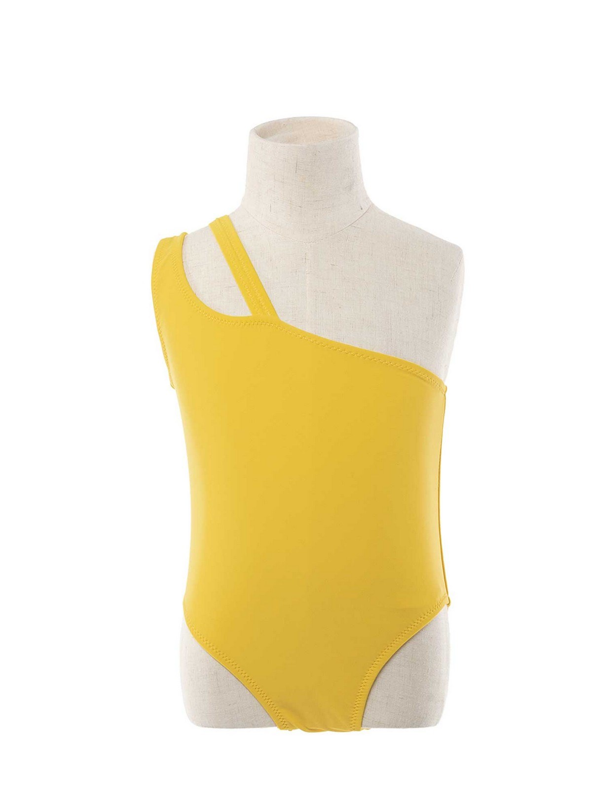 One-piece kids’ swimwear Yellow, with one sided double strap. 80% polyester, 20% spandex
