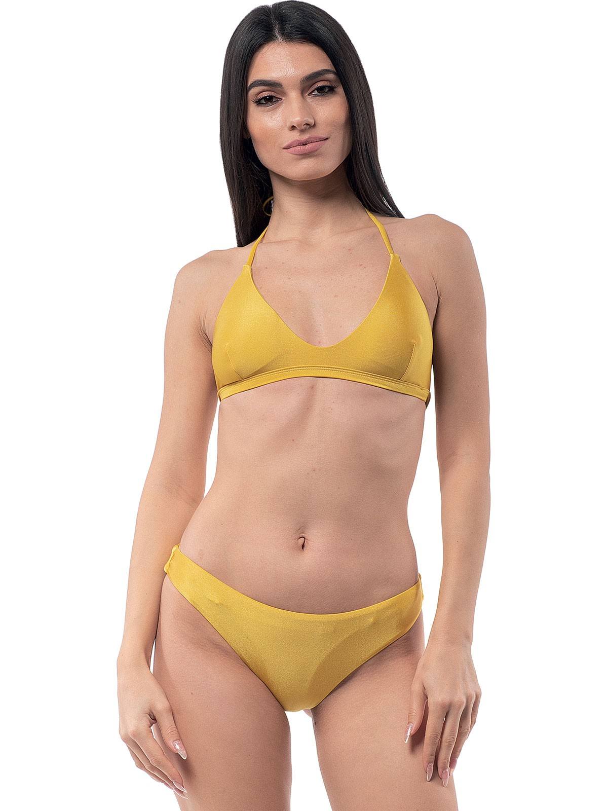 Bikini set plain.The top is triangular with light padding, B CUP with fastening on the neck and on the back, while the bottom fits normally. 80% polyester, 20% spandex