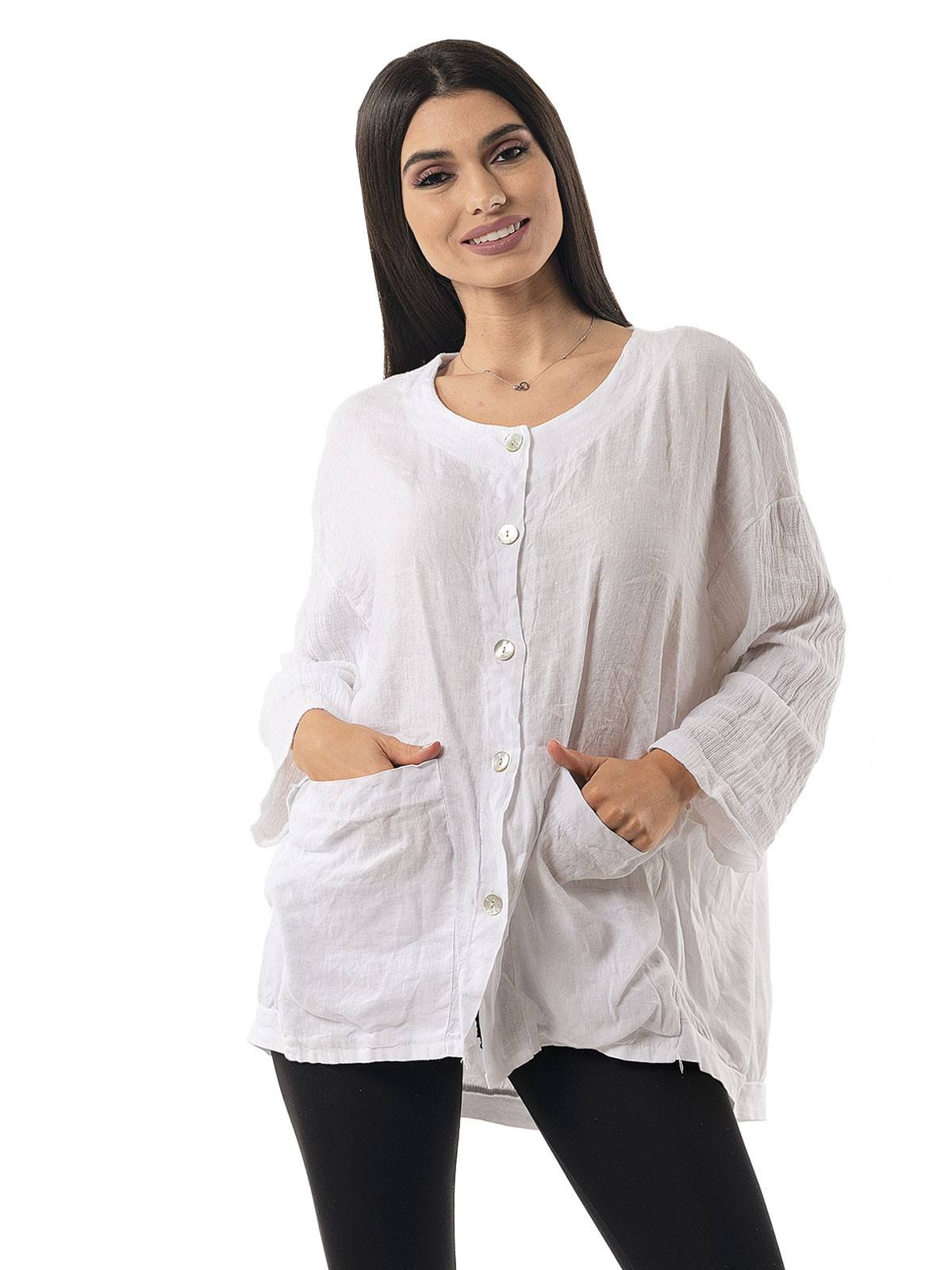 Plain cardigan with pockets and buttons. 70% linen, 30% cotton