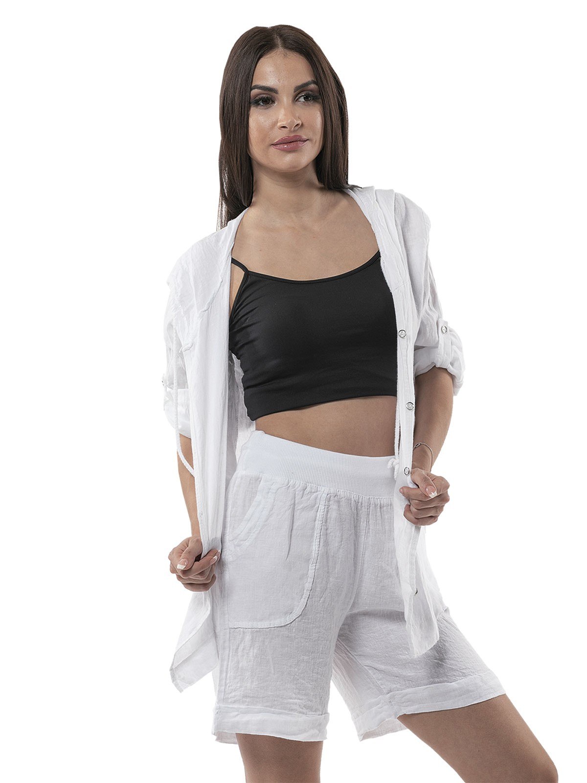 Plain cotton Bermuda shorts with pockets and λάστιχο. 100% cotton, 100% linen