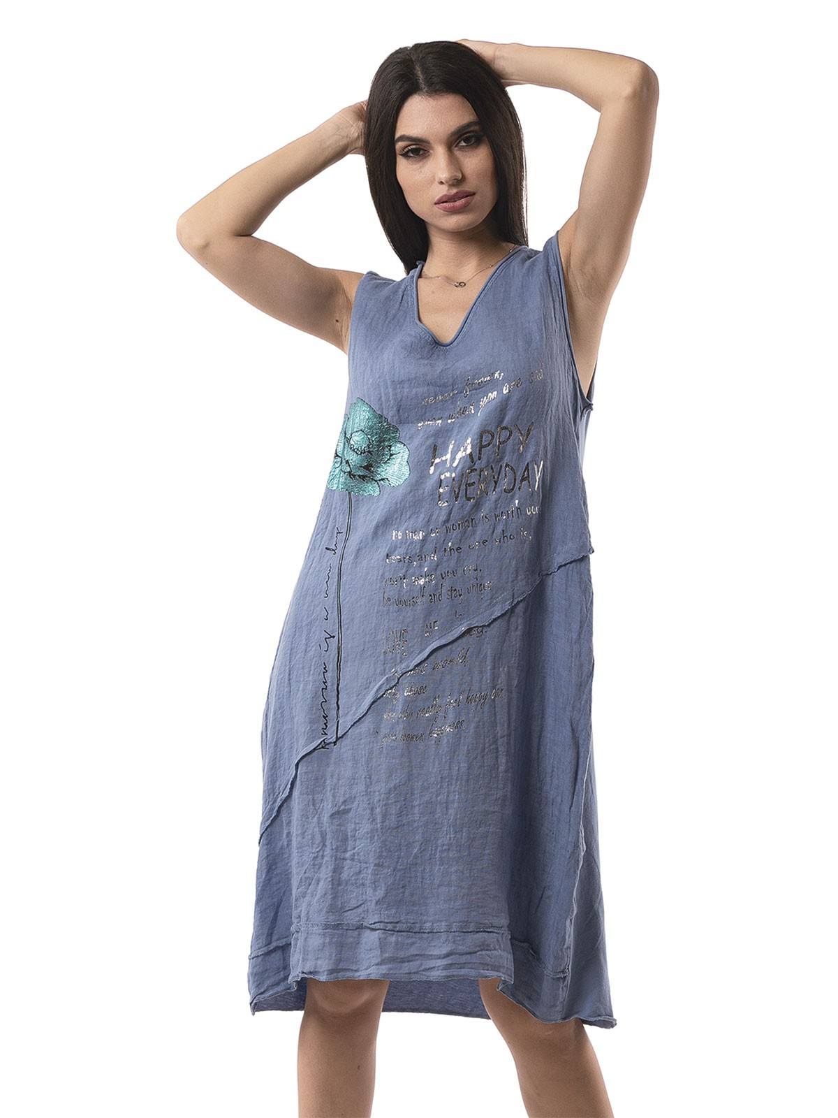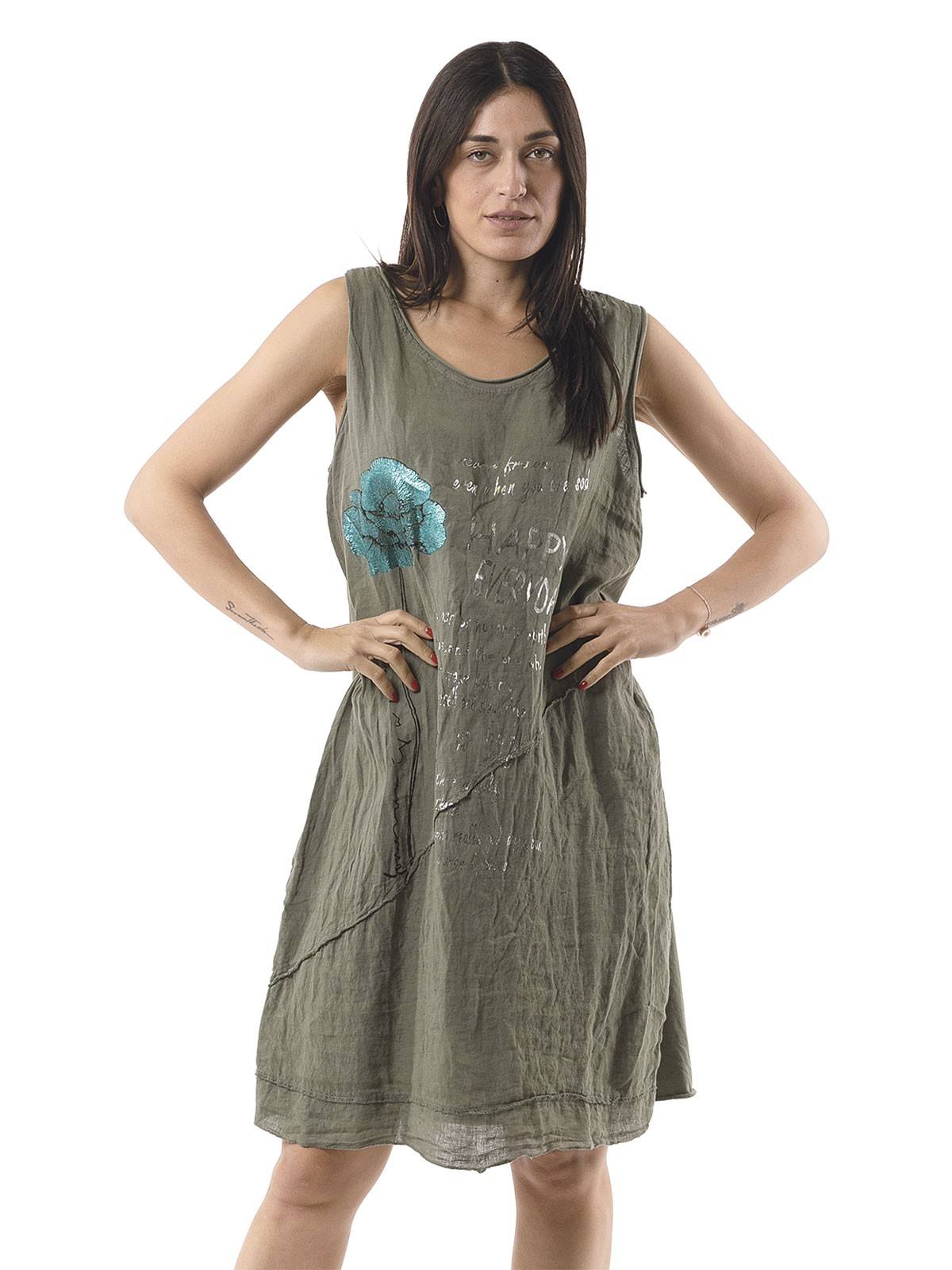 Dress linen sleeveless with print. Cool and light during the entire day. 100% linen