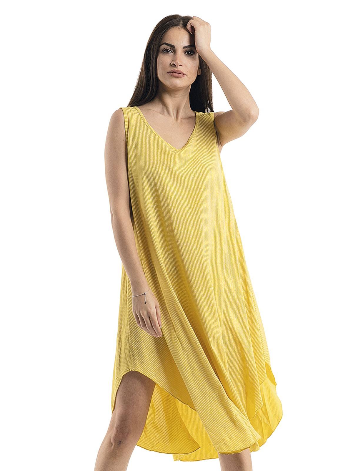 Short striped dress sleeveless with side slits. 100/% rayon