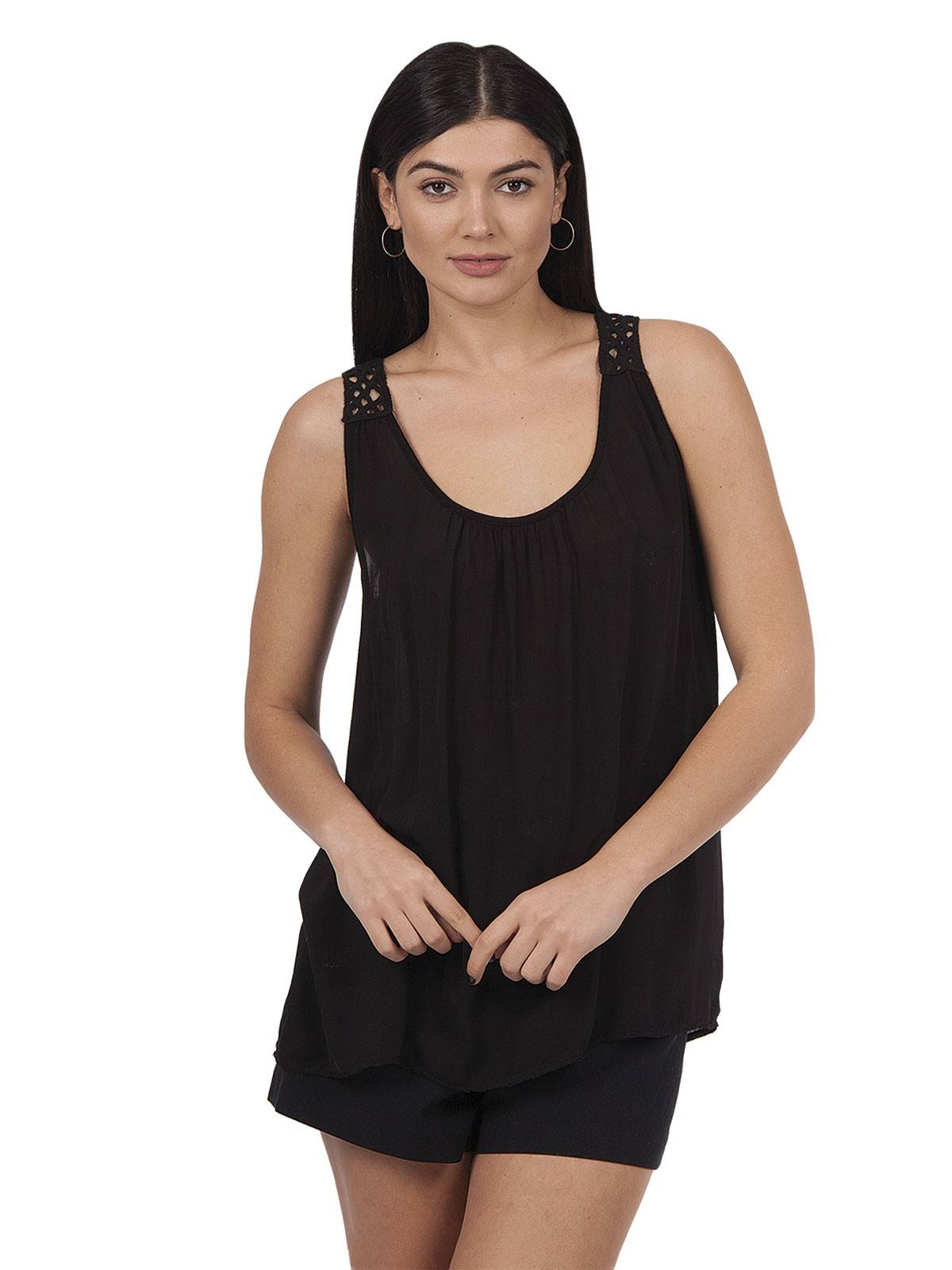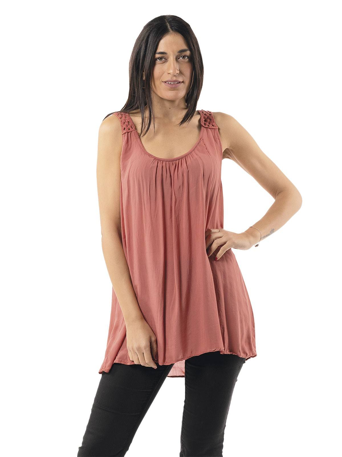 Blouse sleeveless plain with knitted design on the back. 100% viscose