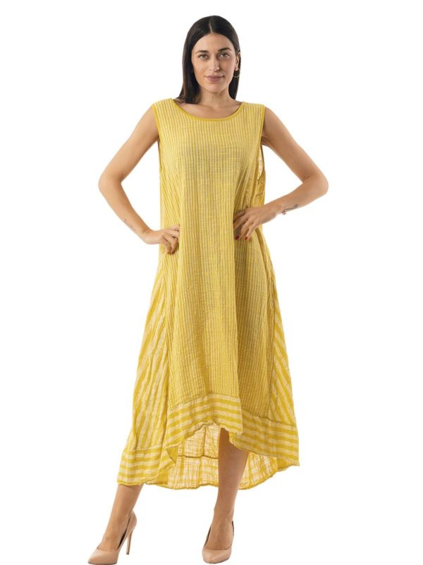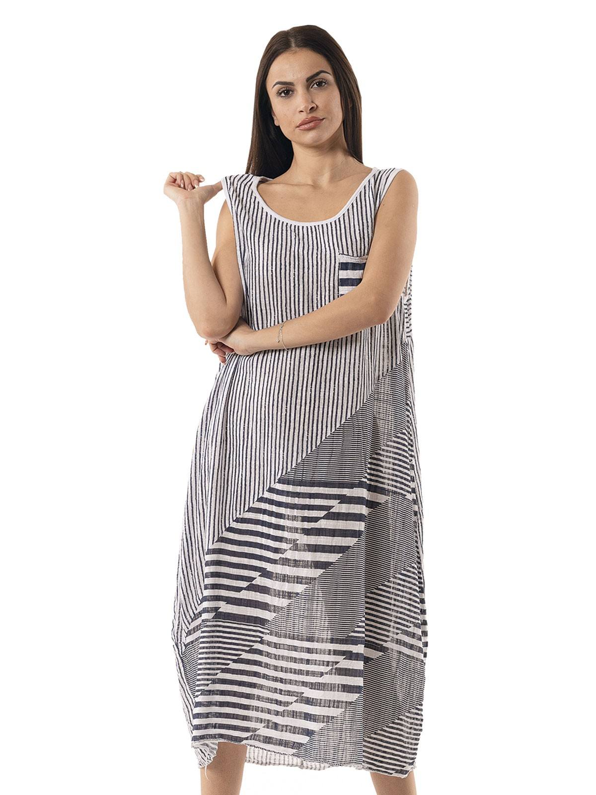 Striped midi dress, sleeveless with pocket on the top. 100% cotton