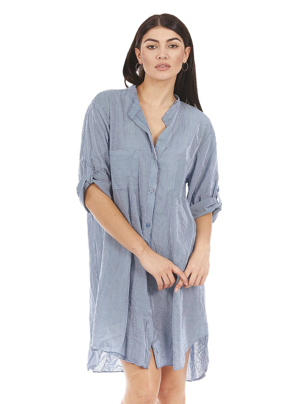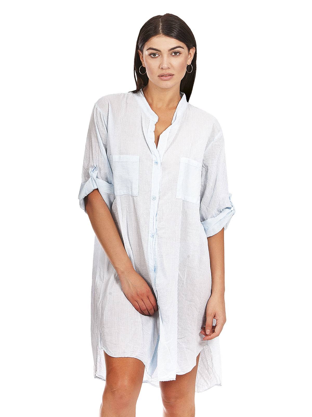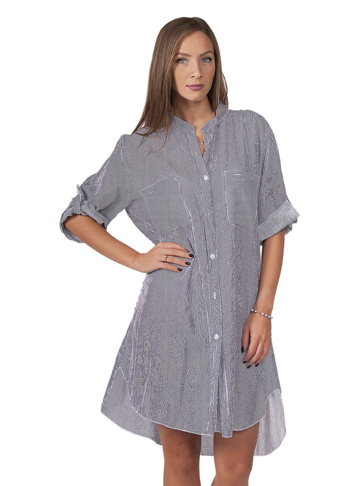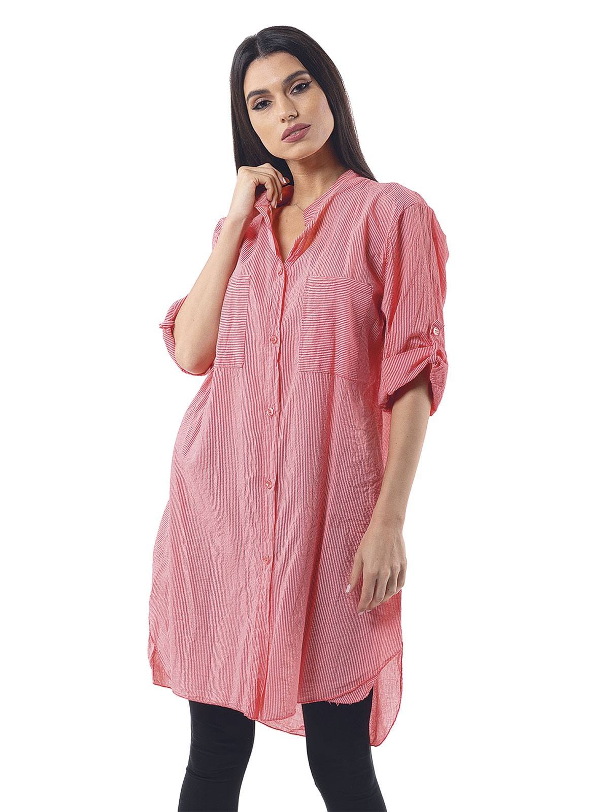 Striped shirt, with 3/4 sleeves, small stripe, with buttons and Mao collar. 100% cotton