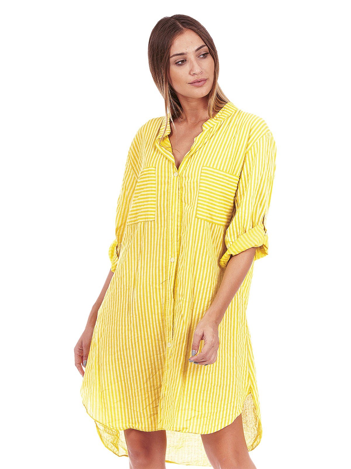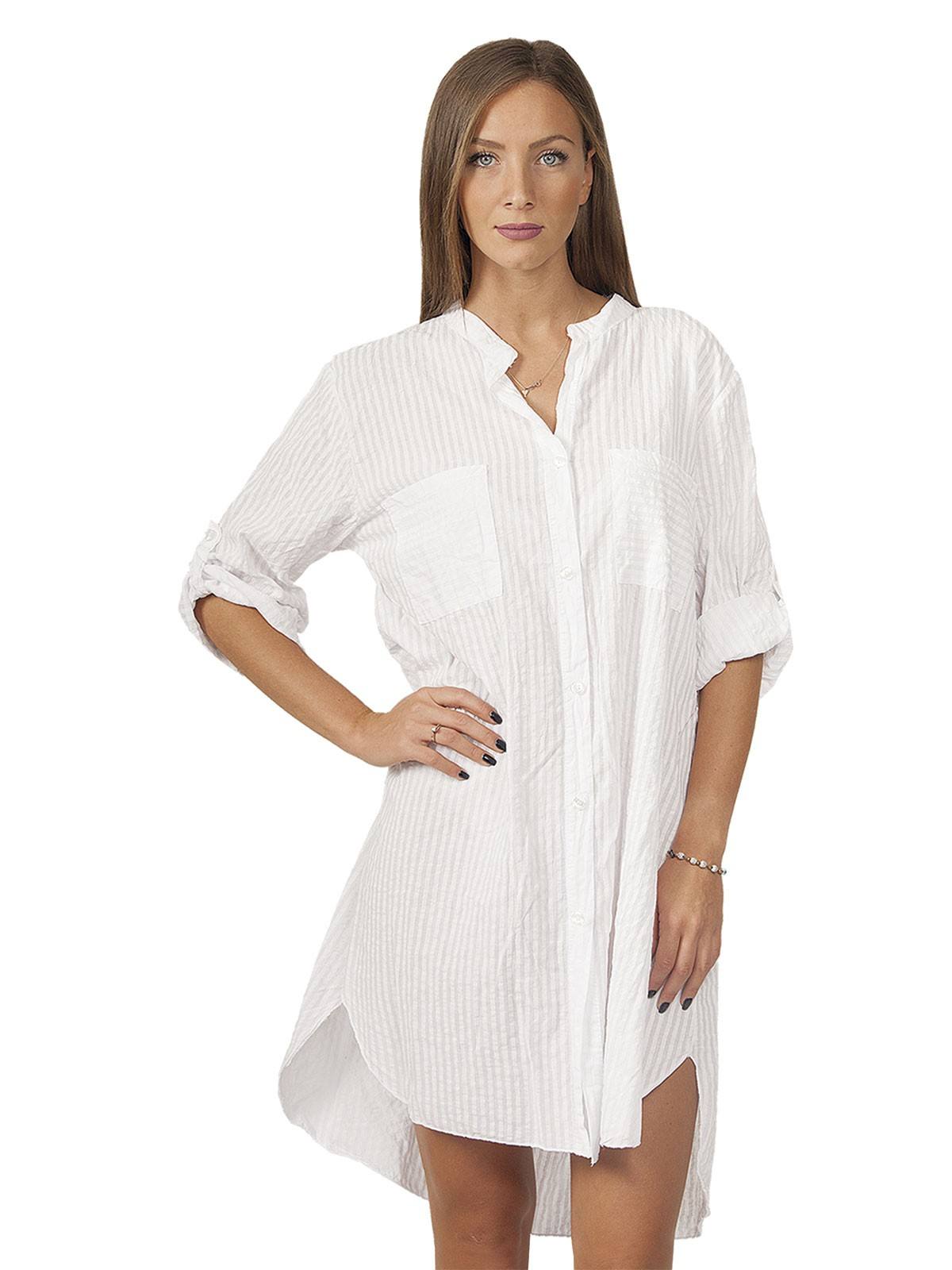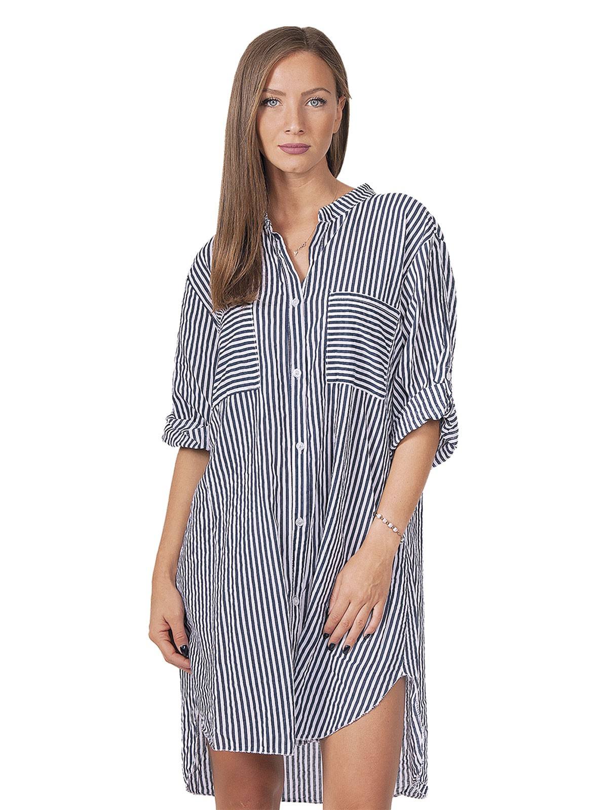 Striped shirt, with 3/4 sleeves, medium size stripe, with buttons and Mao collar. 100% cotton