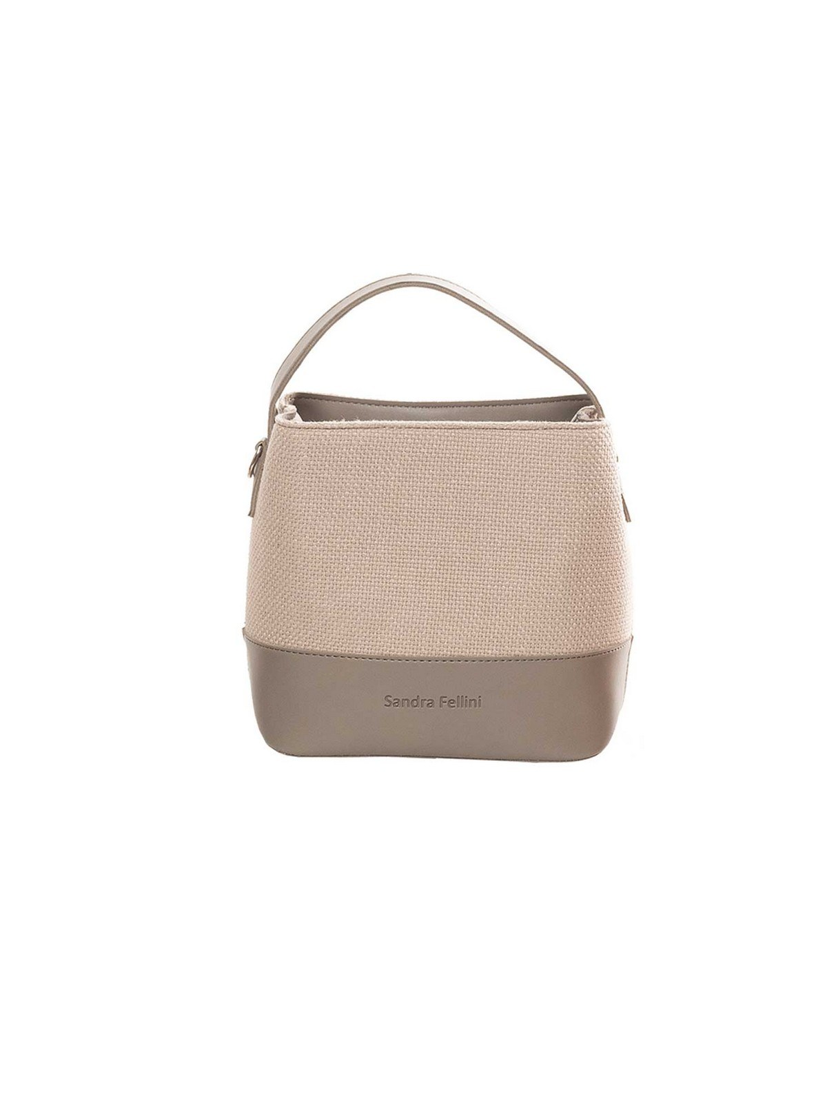 Women’s bag with fabric and leatherette. It has a shoulder strap, zipper and button
