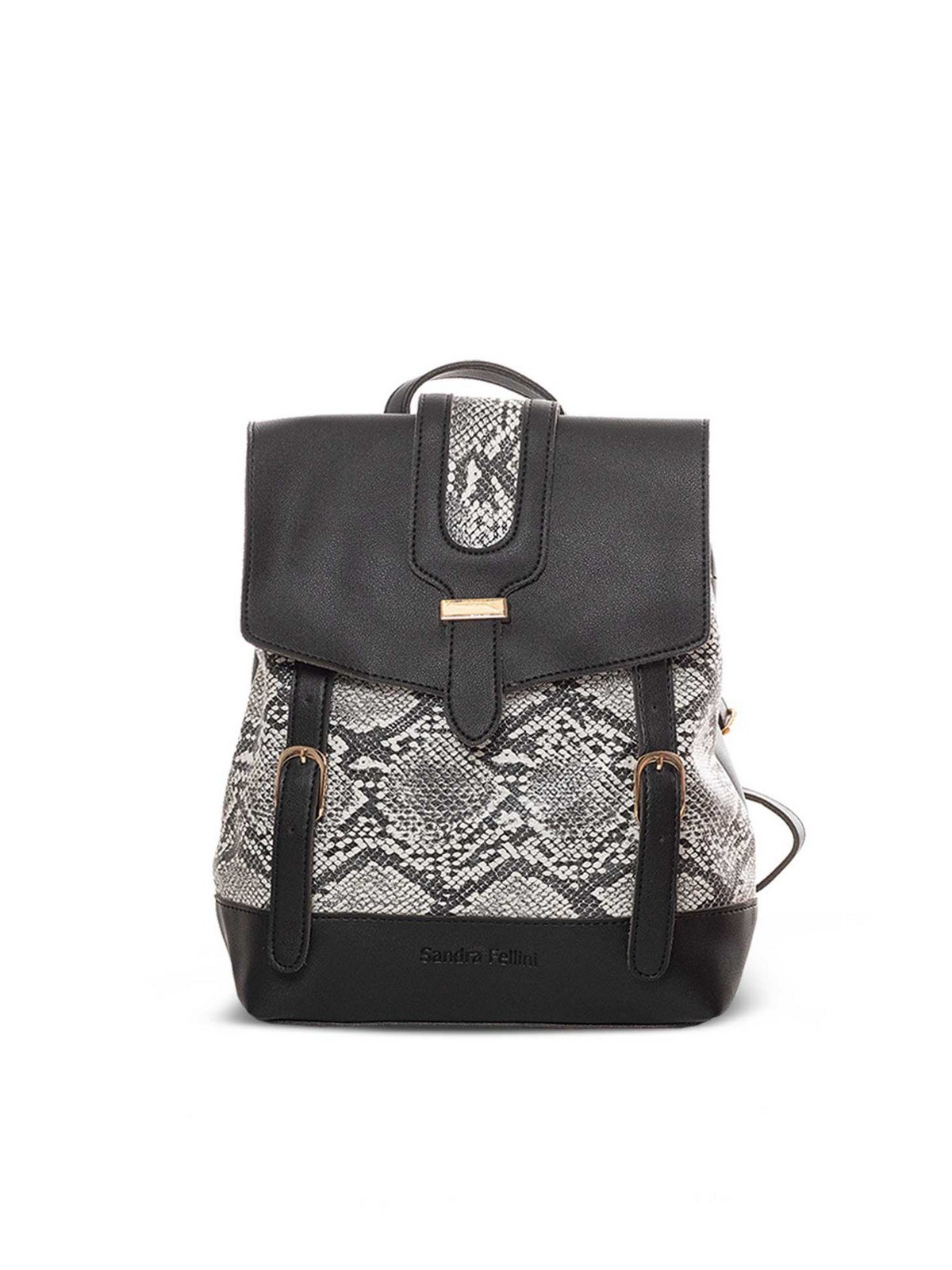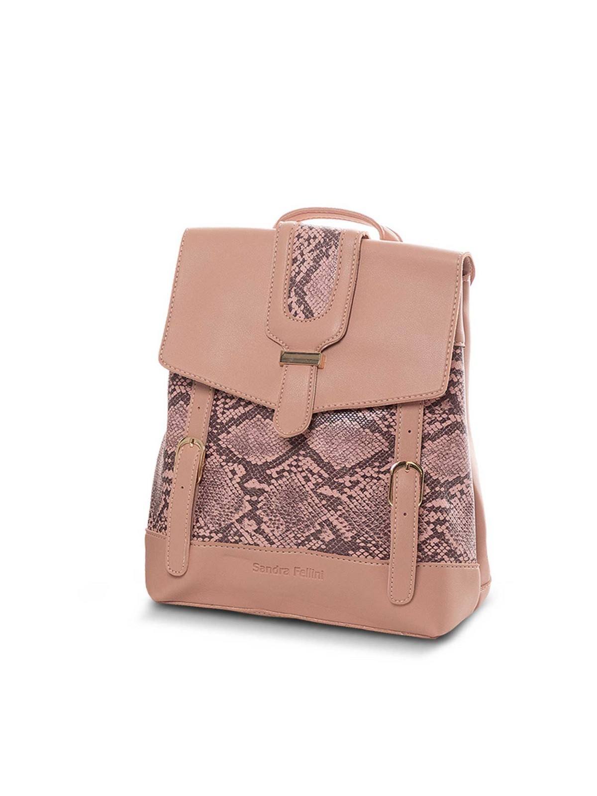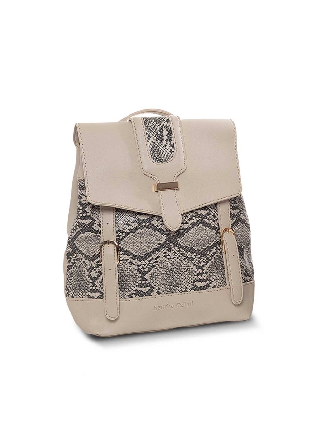 Women’s backpack leatherette, with adjustable straps, with snake pattern and fastens with button