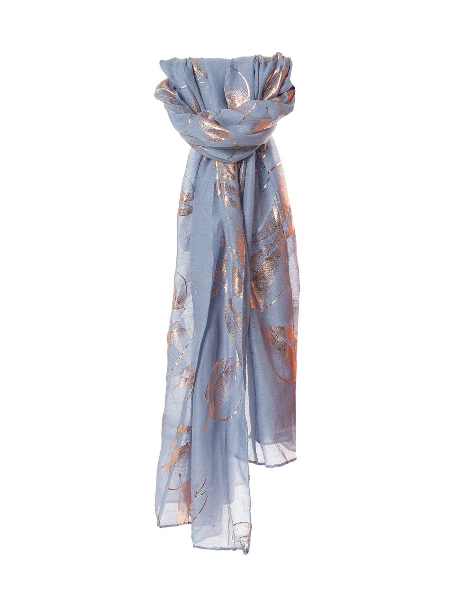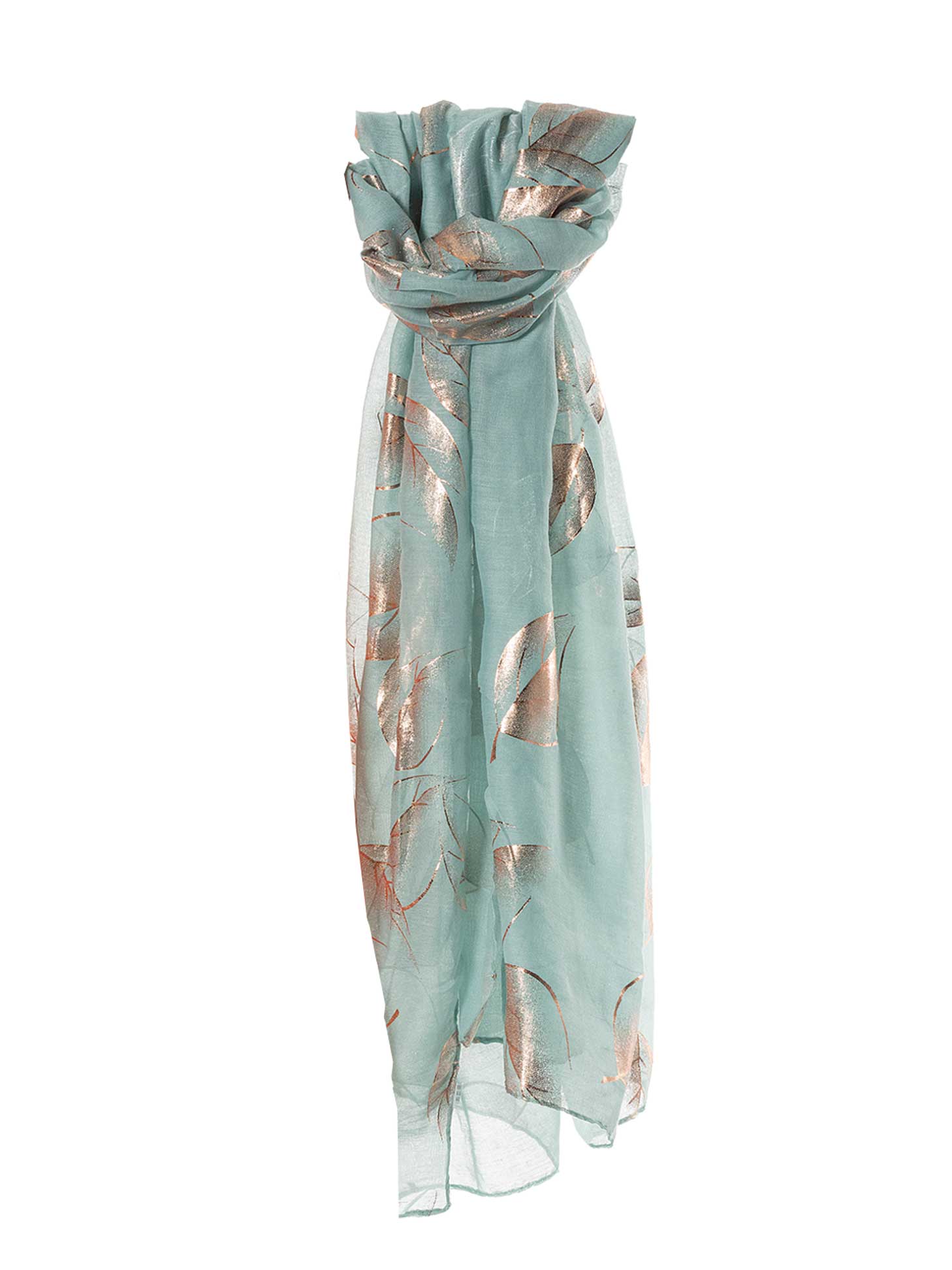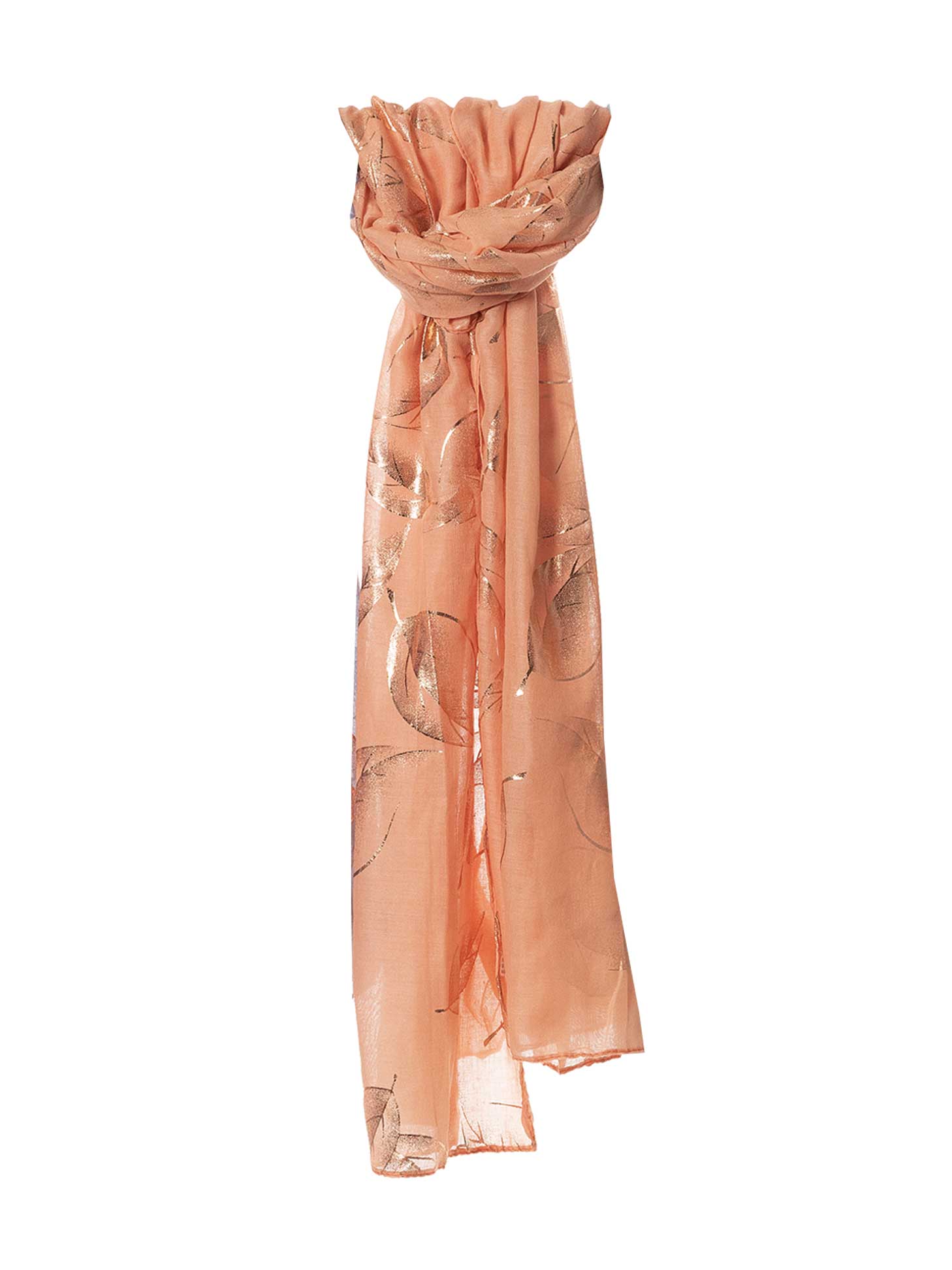 Φουλάρι γυναικείο με χρυσό τύπωμα σε σχέδιο φύλλο σε διάφορες αποχρώσεις. 100% polyester
